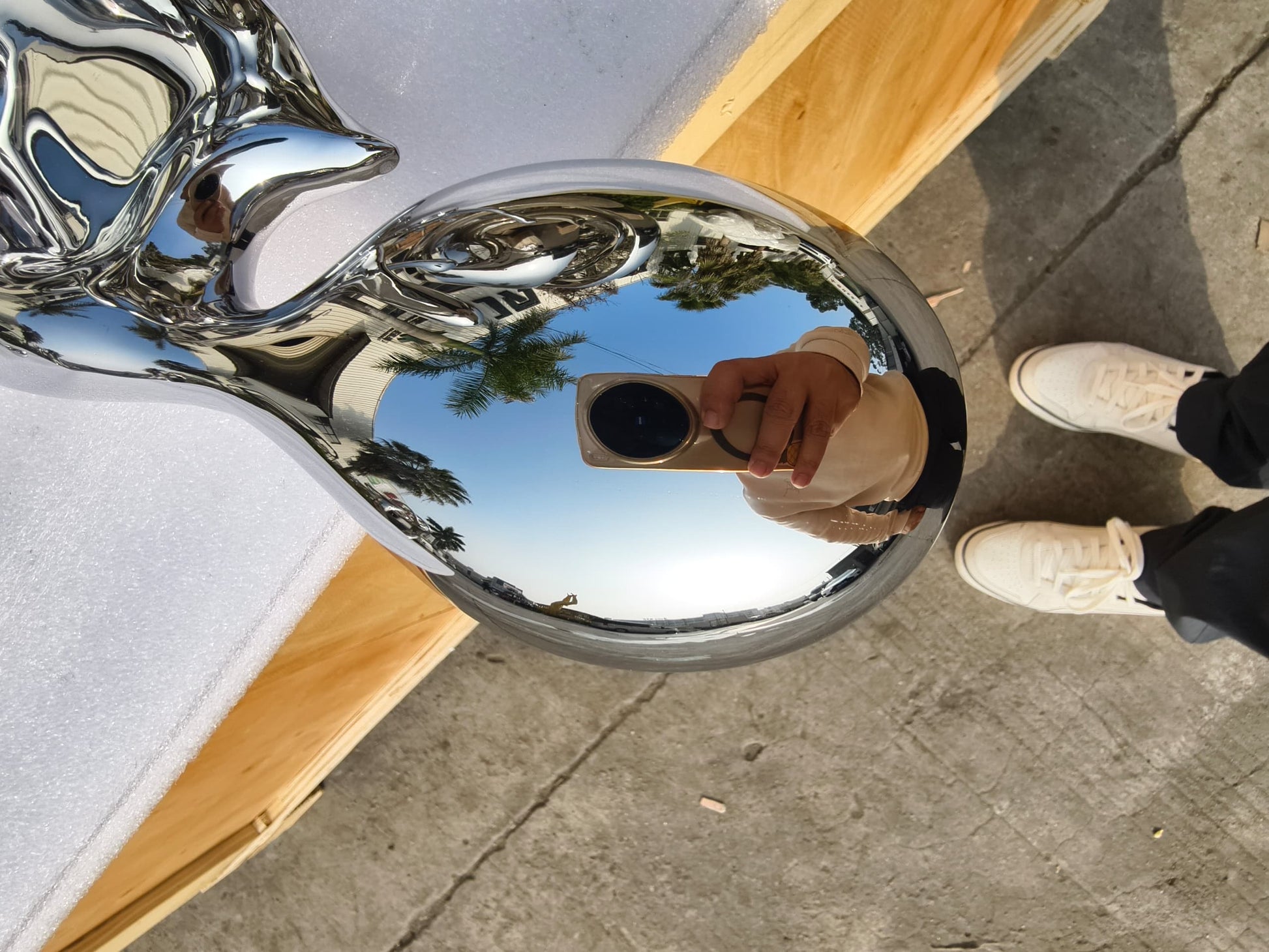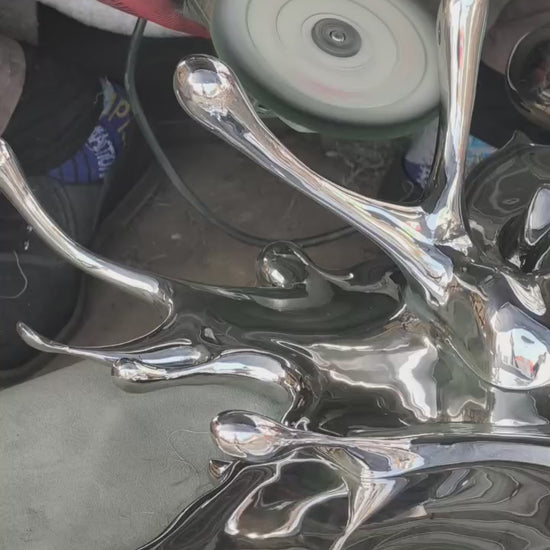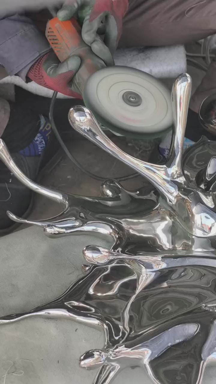 Cast and welded stainless steel sculpture.