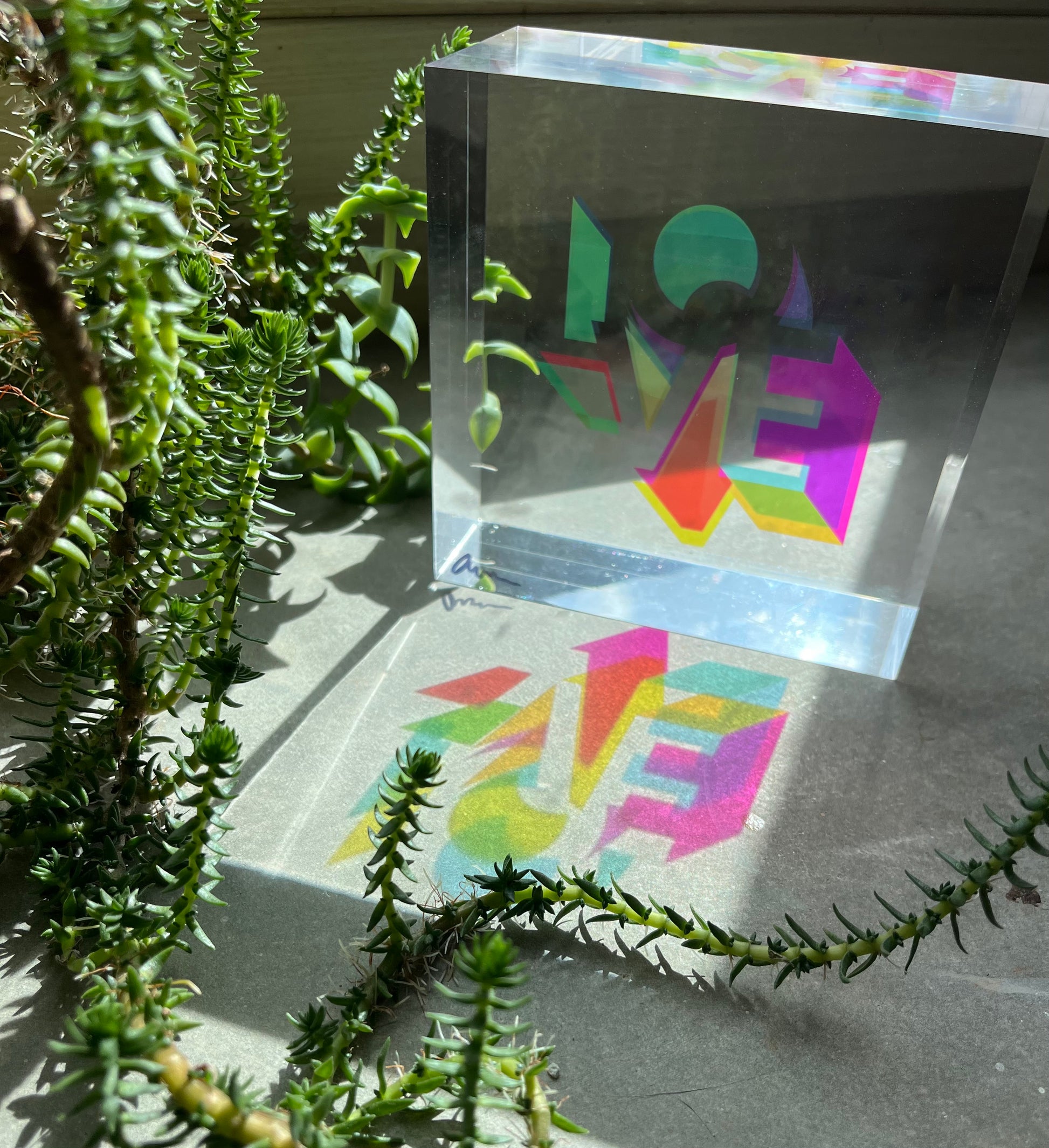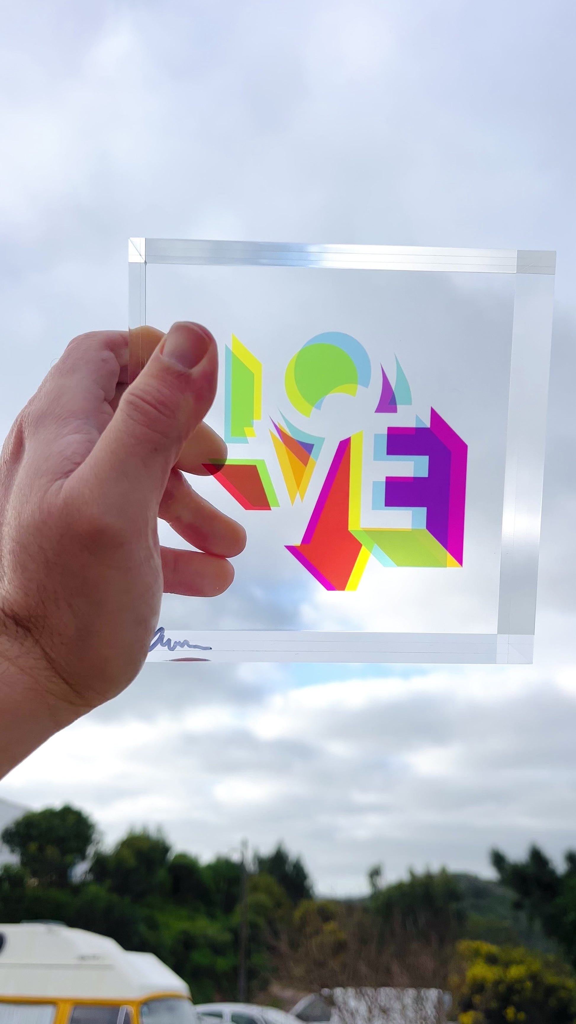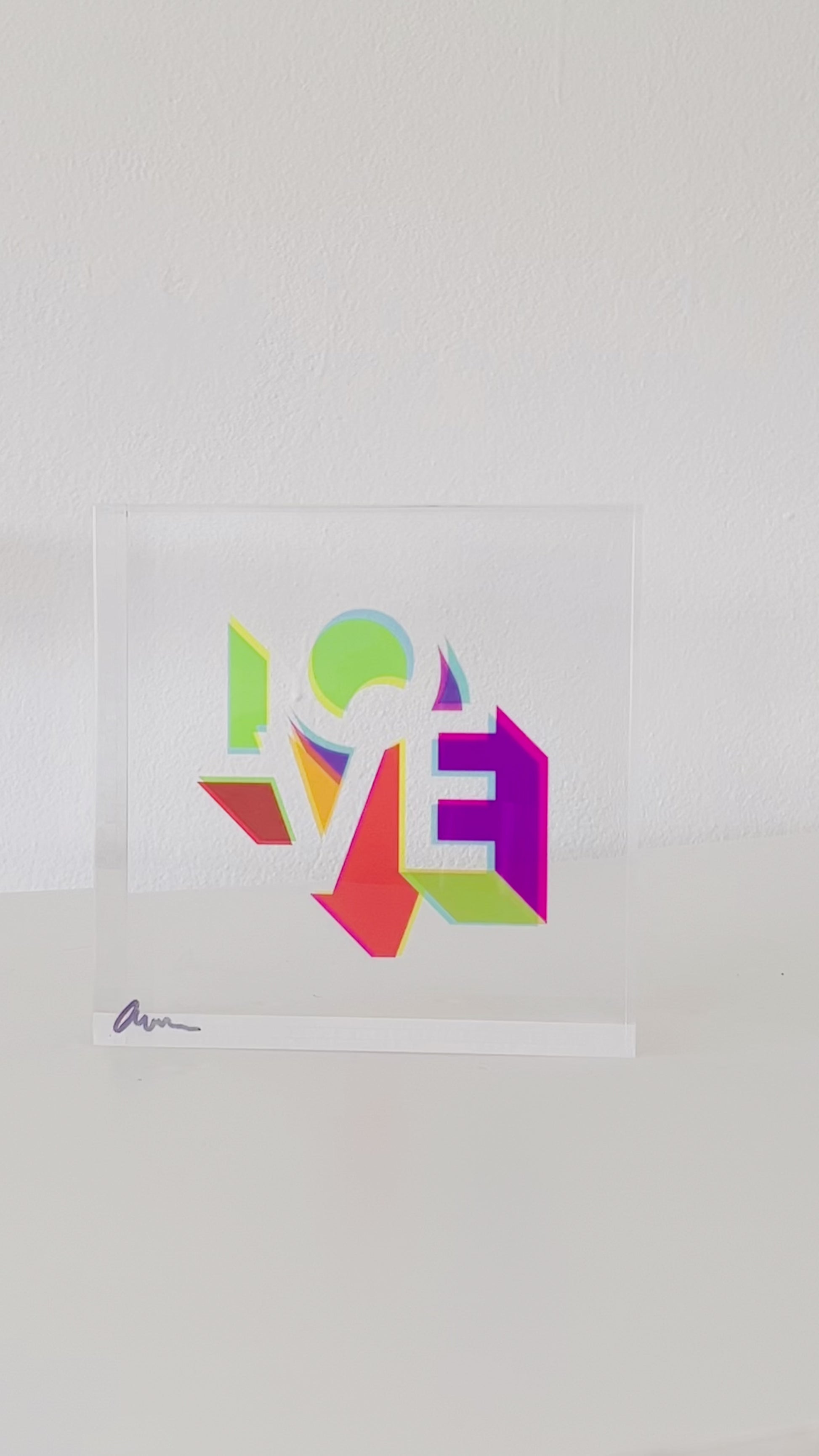 I wanted to bring overprinting into sculpture. In screen printing, it’s the moment when layered inks overlap and create new colours. With translucent acrylic, light does the mixing. That’s how these Love blocks came to life.